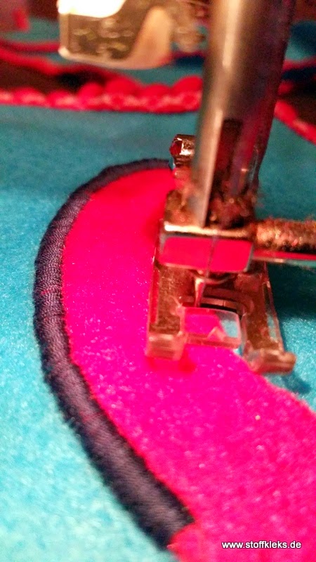 | dann die Buchstaben auflegen und mit dem engsten ZickZackstich 2x umnähen |